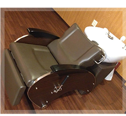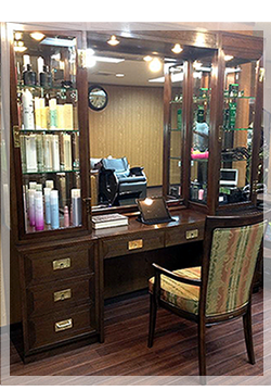 カリモクの最高峰ドマーニやアシュレイのドレッサーとイスに座って頂き カット、カラー、パーマ、ヘッドスパなどをして頂けます。